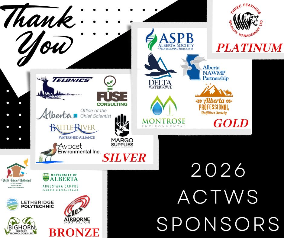 You are invited to submit titles and abstracts for oral presentations and posters at the 2026 conference of the Alberta Chapter of The Wildlife Society. Presentations on all aspects of wildlife are welcome including ecology, management, research, monitoring, species biology, genetics, and new techniques.